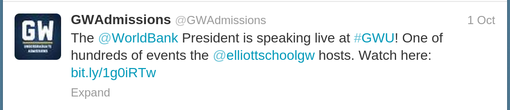 For this reason, it will fit very well in the "Case for Employing Social Media" and new proposed campaign sections of my proposal for the Office of Undergraduate Admissions at The George Washington University.